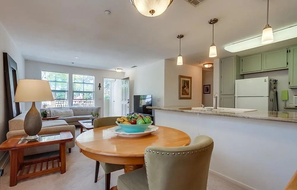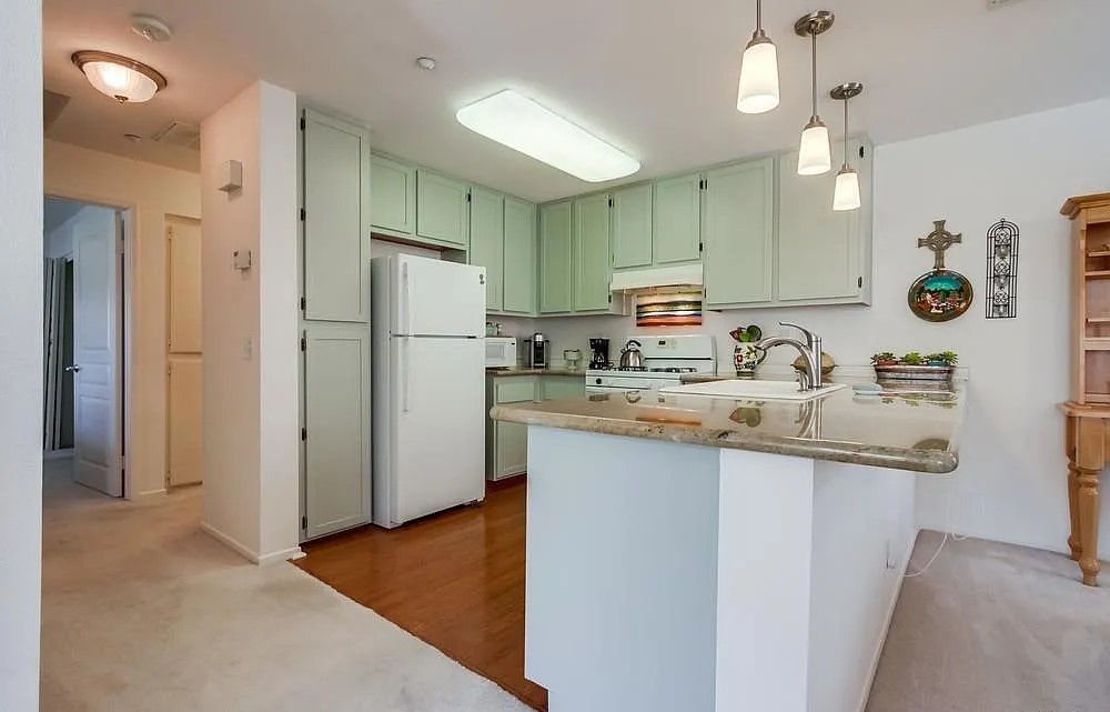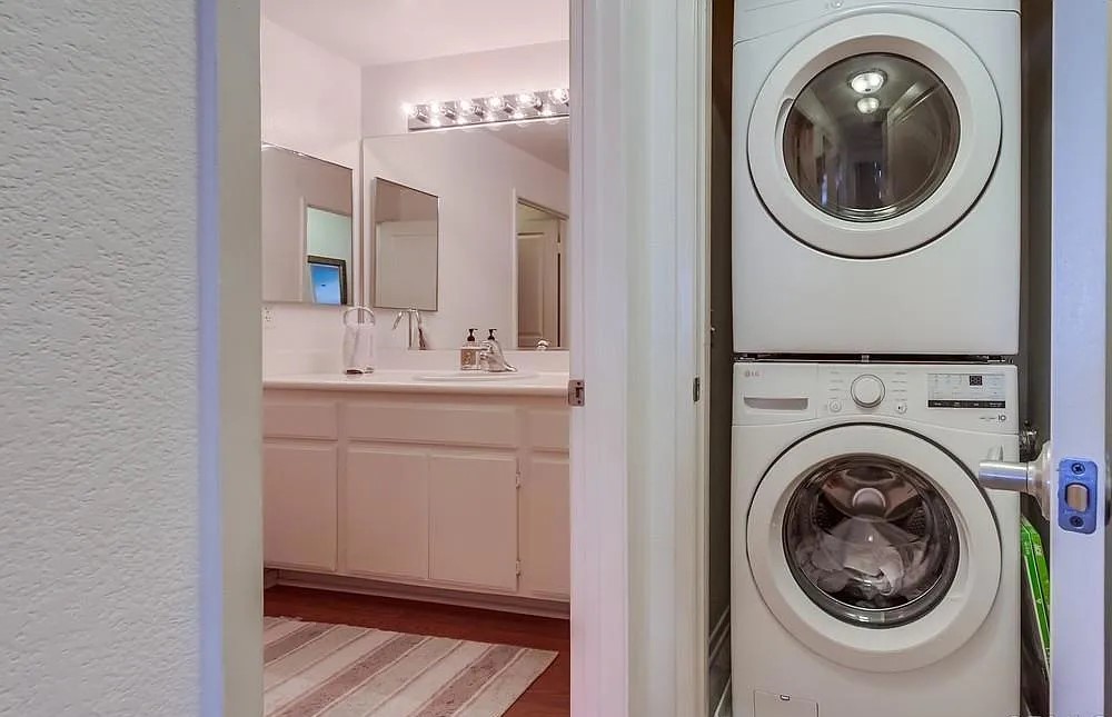 A stylish upper-level condo located in the Sycamore Walk community of San Diego’s 92127 area. This 2-bedroom, 1-bath unit offers 882 square feet of bright, open living space with modern upgrades throughout. The kitchen features granite countertops, an island, and updated cabinetry, while the in-unit laundry includes a full-size stacked washer and dryer. Central air conditioning and a functional layout make it a comfortable and convenient home.